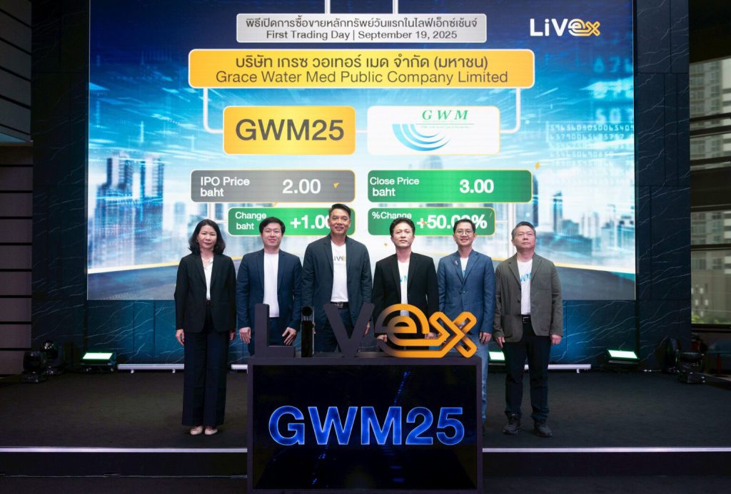Grace Water Med Public Company Limited (GWM25) made its trading debut on the LiVEx Exchange on Friday, September 19, 2025, attracting keen investor interest. The company was supported in the listing process by Zenon Advisory Limited, serving as its financial advisor. Mr. Thongchai Pami, Chief Executive Officer of GWM25, said the positive market reception reflects